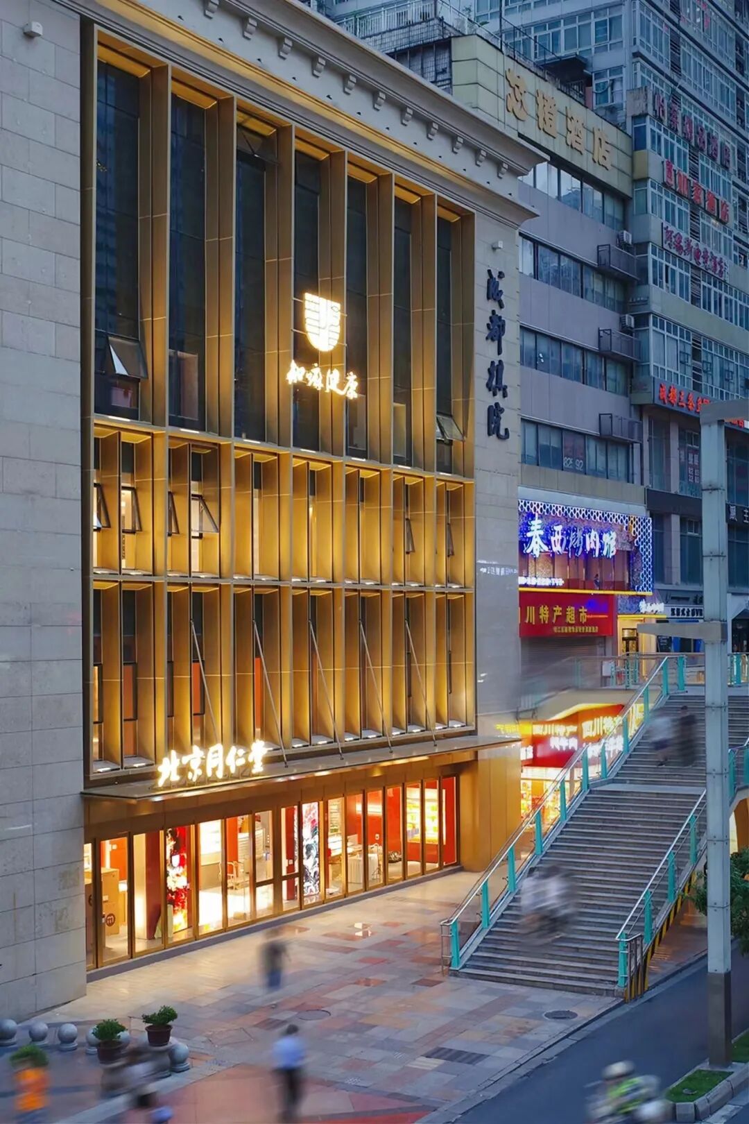 知嘛健康成都旗舰店通过应用红墙、琉璃瓦、斗拱、青砖、柱廊等中国传统元素,再由金属、玻璃和其他现代材料构建的空间框架内产生了不同寻常的效果,向公众展示出了同仁堂向皇家供御药的特殊DNA,有助于品牌在成都实现本土化。此外,成都旗舰店除了呈现出多功能的空间,还以未来视角,将场景、产品、客户体验和互动与品牌基因和市场需求相融合,激发品牌城市活力。