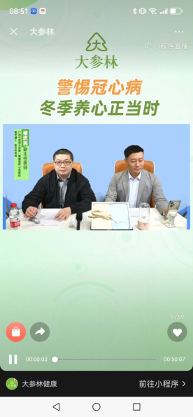 2021年1月,上海和黄药业携手全国各大连锁药店开展“名医直播”公益讲座,邀请专家在网络直播平台广泛普及冠心病等慢性疾病的诊断、治疗、预防知识,帮助大众建立科学的健康意识,不断提升大众的慢病自我管理能力。2022-2023年度累计开展直播1462场,教育近150万人次。同时,药店举办“医师咨询”义诊活动456场,教育近2.5万人次。
