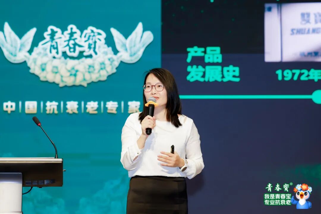 在下午的培训会上,雷莉首先对青春宝抗衰老战略做了详细宣贯。全新的品牌升级包括三方面:一是,超级符号“小鸟衔花环”,寓意着带去青春与美好;二是,超级角色“青春小鸟”,青春小鸟形象活泼可爱,充满活力,彰显了青春宝品牌年轻化、活力化的新面貌;三是,抗衰老片、永真片、金屏风胶囊等抗衰老家族产品的全新包装,展现了青春宝对创新的持续追求。