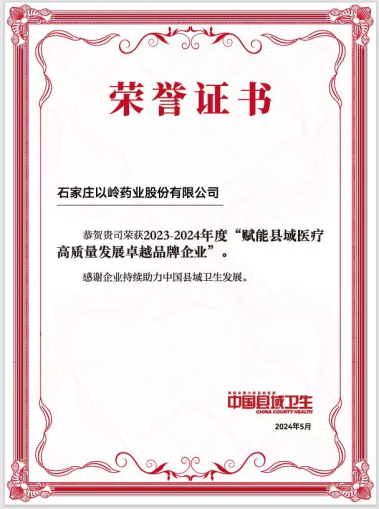 以岭药业荣获“赋能县域医疗高质量发展卓越品牌企业”