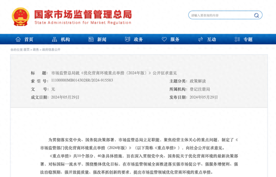 5月29日,国家市场监管总局发布《市场监管部门优化营商环境重点举措(2024年版)》,向社会公开征求意见,在医药行业监管方面明确,要加快完善公平竞争制度规则;推动出台《公平竞争审查条例》,完善审查标准和审查程序。推动修订《经营者反垄断合规指南》,研究制定《药品领域反垄断指南》。