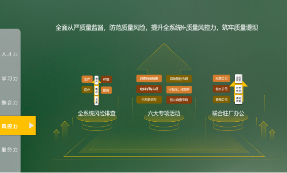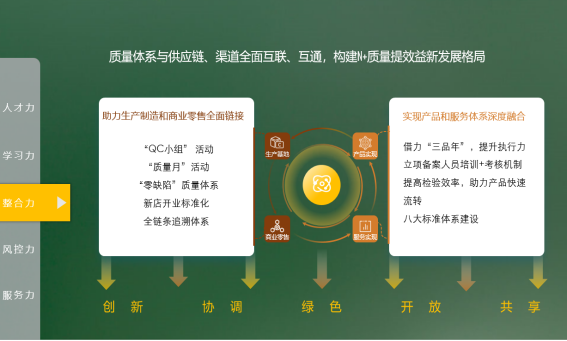 基于“1224”的战略沙盘,结合洞察大健康产业布局特点和规模发展需求,同仁堂健康药业公司从全过程管理、全级次落实、全品类覆盖、全员性参与、全流程溯源五个角度出发,提出以“五个力”为驱动因子,塑强质量硬核能力,保障企业在产业模式、业务创新、组织建设等方面的长足发展。