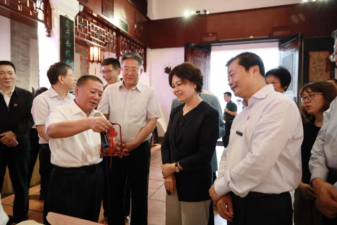 李楚源对铁凝一行的到访予以热烈欢迎,并详细介绍了广药集团的发展情况以及在弘扬中医药文化、传承非遗文化等方面取得的成果。铁凝充分肯定了广药集团多年来对弘扬和传承国家非物质遗产所作出的诸多努力。她表示,广东是岭南文化中心地,有着种类繁多的历史文化遗产。希望广药集团继续发挥自身优势,推动非遗文化创造性转化、创新性发展,推进文化自信自强,更好担负起新时代新的文化使命,为赓续中华文脉、建设社会主义文化强国作出更多贡献。