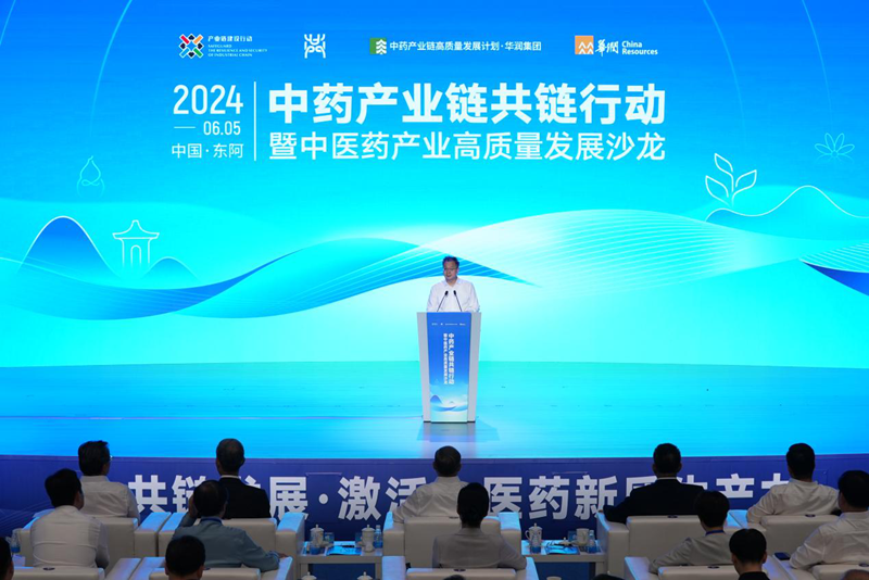 2024年6月5日,在国务院国资委、工业和信息化部指导下,由中国工业经济联合会和华润集团有限公司联合主办的中药产业链共链行动暨中医药产业高质量发展沙龙在山东聊城成功举办。山东省委书记、省人大常委会主任林武,国务院国资委秘书长庄树新,工业和信息化部消费品工业司司长何亚琼,中国工业经济联合会党委书记、执行副会长兼秘书长熊梦,国家中医药管理局副局长黄璐琪,华润集团有限公司董事长王祥明出席大会并致辞。中国工程院院士、国家饲料工程技术研究中心主任应汉杰,中国工程院院士、国家饲料工程技术研究中心主任谯仕彦等专家发表演讲。