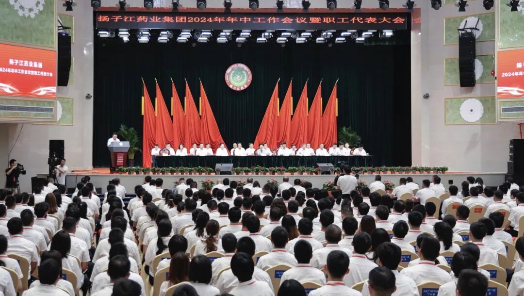 市领导钱忠、叶冬华出席会议。扬子江药业集团党委书记、董事长、总裁徐浩宇作年中工作报告。