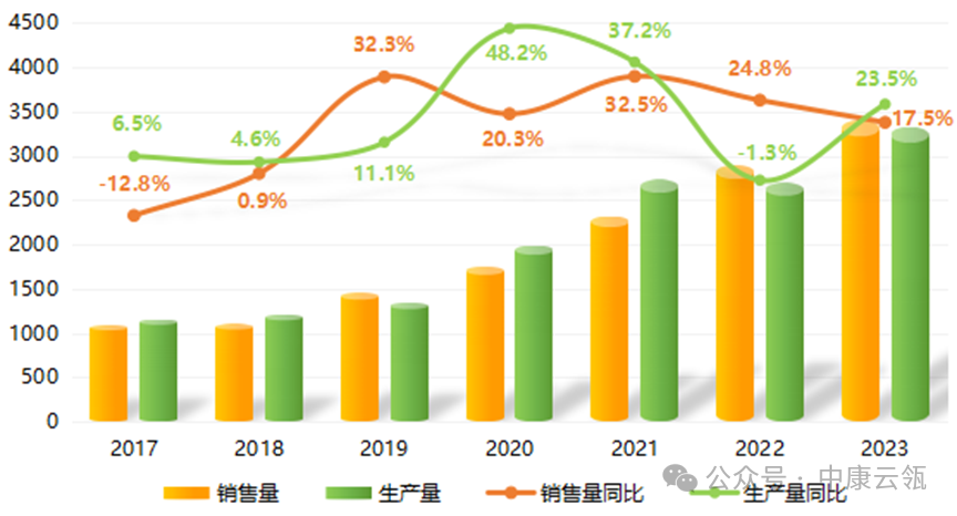 2023年乌灵胶囊生产量及销售量均超过3000万盒,生产量3327.18万盒,同比增加23.5%,销售量3402.51万盒,同比增加17.5%,近5年销售量快速增长,且连续两年销大于产。