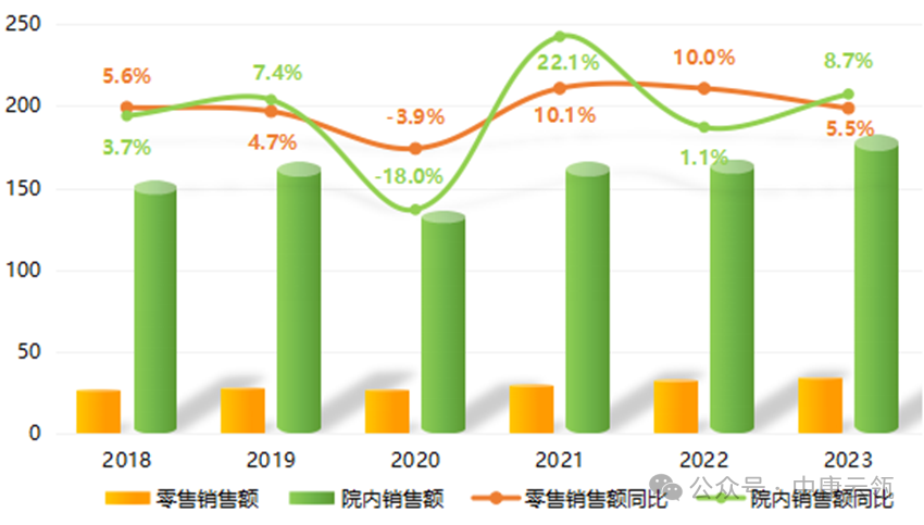 据中康开思系统显示,2023年神经系统用药总销售额超过217.5亿元,连续3年呈上升趋势,其中院内销售额182.4亿,同比增加8.7%,零售端销售额35.1亿,同比增加5.5%。