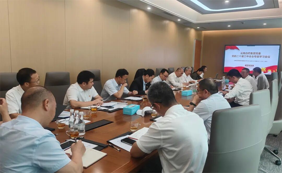 2024年7月22日,云南白药集团党委组织召开党委理论学习中心组(扩大)学习会议,专题传达学习习近平总书记在党的二十届三中全会上的重要讲话精神和全会精神,认真领会全会精神实质,研究贯彻落实具体举措。