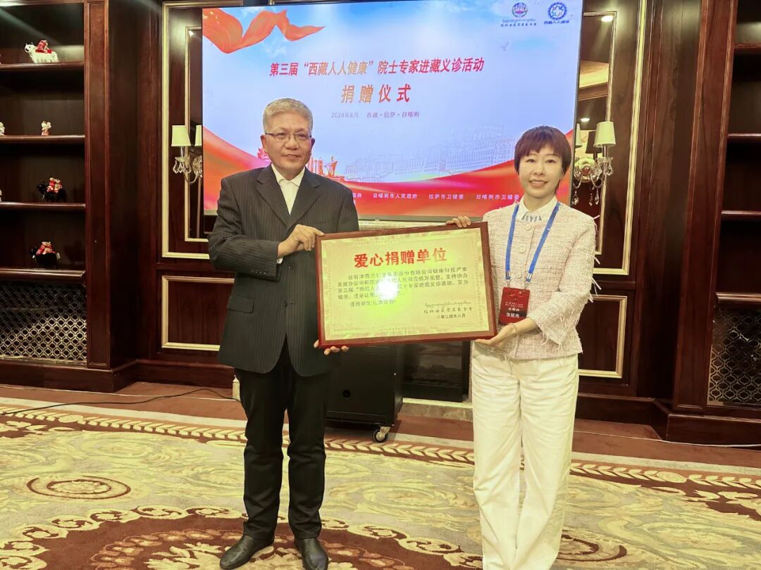 津药达仁堂集团自2021年就积极参与“西藏人人健康”公益项目,此次大会期间,津药达仁堂向援藏基金会捐赠了100万元,并签署了“西藏人人健康项目”战略合作协议。