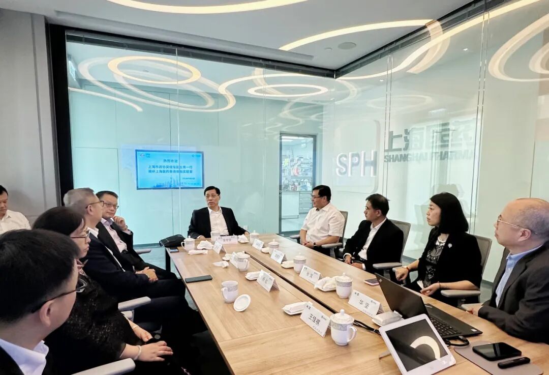 9月2日,上海市政协副主席吴信宝一行调研上实集团、上海医药,考察沪港生物医药领域合作情况。上实集团董事长冷伟青、总裁张芊,上海市政协常委、港澳台侨委员会主任姚海,上海市政协常委、港澳委员召集人、港澳台侨委员会副主任施荣恒,上实集团副总裁楼军,上实集团副总裁、上海医药党委书记、董事长杨秋华参加调研。