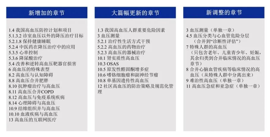 同时,本次《指南》在合并临床情况的高血压、继发性高血压、社区高血压的防治策略及规范化管理和高血压的互联网医疗方面亦做了新增及调整。《指南》的最终章节展望了未来高血压及相关疾病研究的方向和内容,旨在继本次《指南》之后继续进行完善工作,这将有助于进一步提升我国高血压的防治水平,并为未来的发展指明方向。