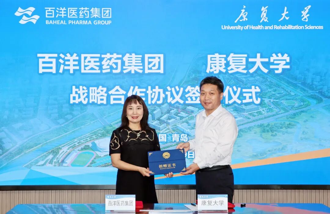 2024年9月19日,百洋医药集团与康复大学在青岛举行校企战略合作协议签约仪式,双方将在康复医学领域开启战略合作,协同推进康复医学的学科建设和科研创新,助力专业人才培养。中国工程院院士、康复大学校长董尔丹,百洋医药集团董事长付钢出席签约仪式并致辞。康复大学党委委员、副校长毕建国,百洋医药集团董事、总裁宋青以及校企双方有关部门负责人参加仪式。