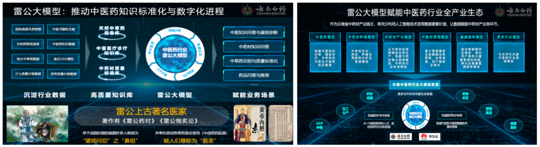 云南白药与华为云联合参赛的“中医药行业雷公大模型”借助人工智能和大模型等先进技术开展了对中医药行业的创新建设,可有效解决中医药行业数据用不了、用不好、不好用等问题。此次获奖,不仅是对云南白药在中医药现代化探索上的高度认可,也是对其利用大数据、人工智能等前沿科技赋能传统中医药行业的创新实践的肯定,展现了其在推动中医药领域数字化转型方面的深远影响与领导力。