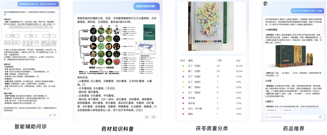 “雷公大模型”目前已训练5000本中医药书籍数据、1万多条精标问答数据、15万条药材数据等。提供包括但不限于面向社会大众、医务工作者、行业、科研人员的文献知识问答、智能问诊、处方推荐、报告解读、药材标准化识别等多个场景应用;实现共创、共享、共赢的中医药行业合作新生态,引领带动大模型及人工智能技术在中医药行业中的创新应用和发展。