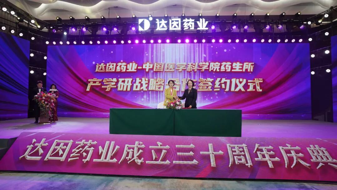 盛典上,达因药业与中国医学科学院药生所正式签署产学研战略合作协议,双方将充分发挥各自的优势,整合资源,共同开展新药研发项目,加速科研成果的转化,为儿童健康领域带来更多创新药物和治疗方法。