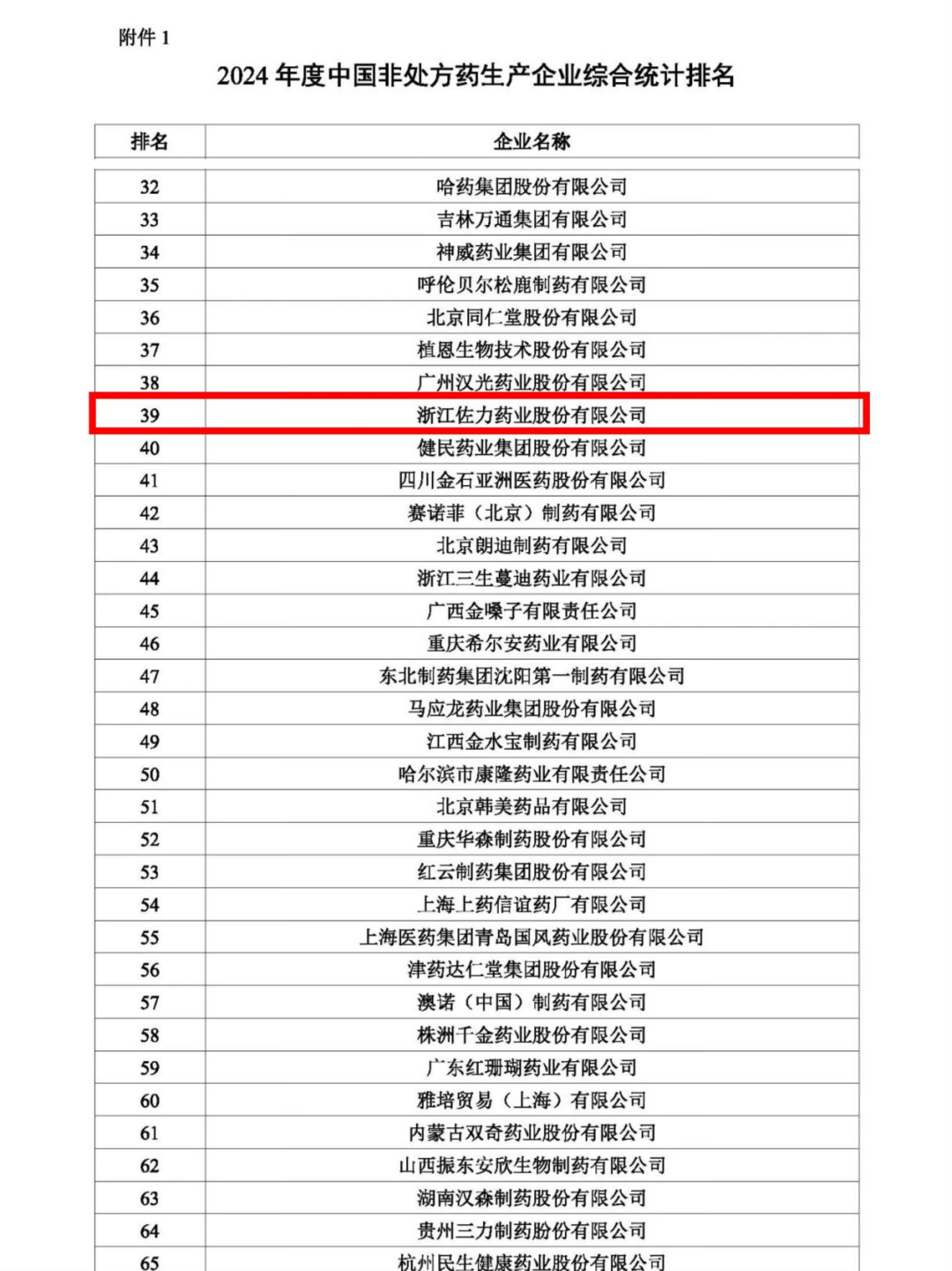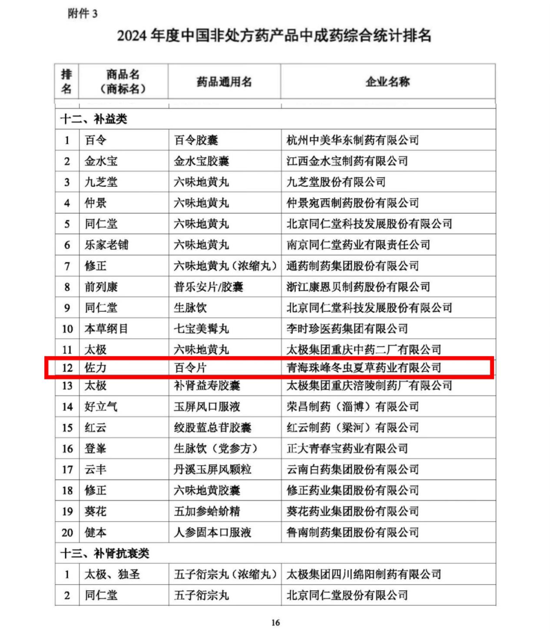 除此之外,佐力药业凭借卓越的业绩荣登2024年度中国非处方药生产企业综合统计排名第三十九名。佐力百令片荣登2024年度中国非处方药产品综合统计排名-补益类第12名