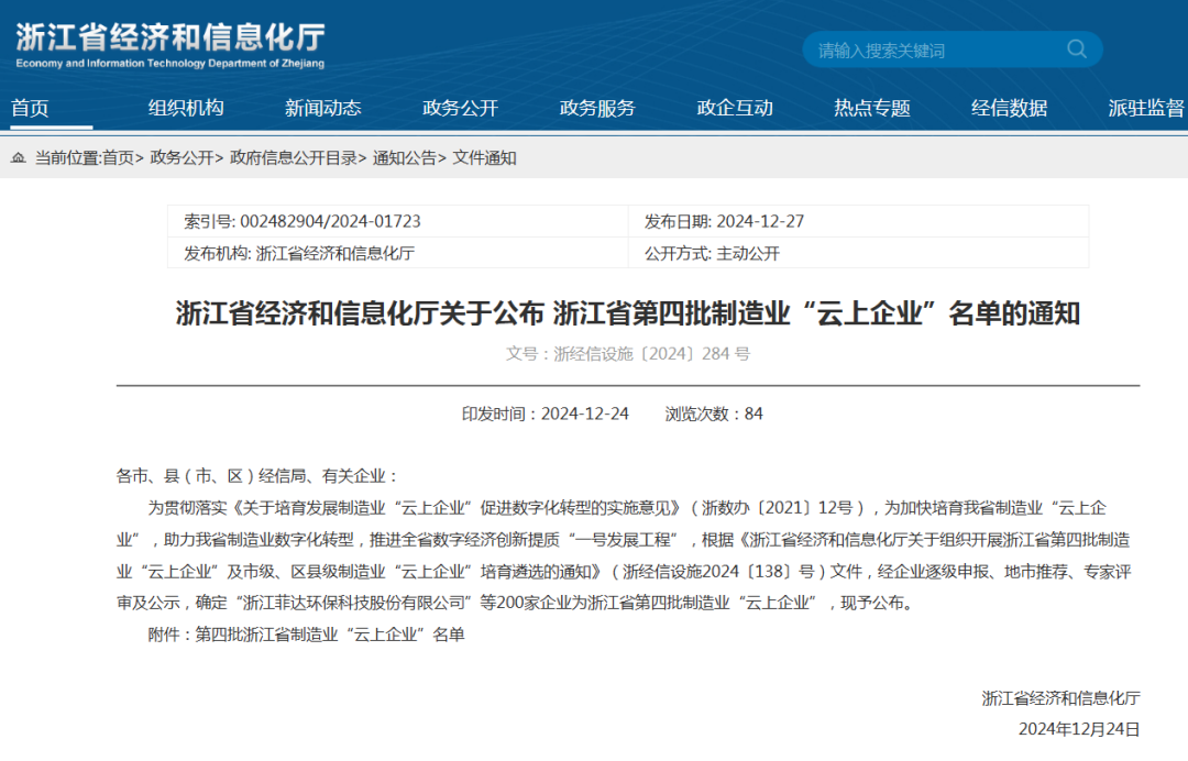 12月27日,浙江省经济和信息化厅官网公布浙江省第四批制造业“云上企业”获奖企业名单。康恩贝集团下属公司凤登绿能凭借自身在信息化建设和数字化转型方面的卓越表现,荣获浙江省第四批制造业“云上企业”称号。
