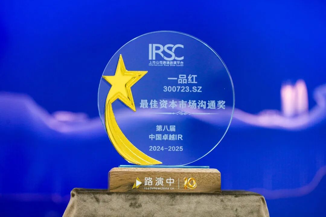 2025年1月7日,2025上市公司投资者关系创新峰会暨第八届中国卓越IR颁奖盛典、资本市场投资者交流会在深圳举行,一品红(证券代码:300723.SZ)荣获卓越IR“最佳资本市场沟通奖”。