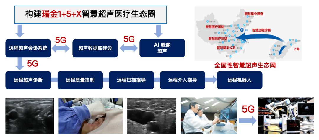 该项目以瑞金医院为核心,联通瑞金各大分院区,外延辐射全国多家基层医疗机构,创新构建起“1+5+X”智慧超声远程诊断服务体系,充分利用5G网络的高速、低延迟特性,实现超声影像即时传输,让医学专家能够突破地域壁垒,为基层患者带来远程精准诊断服务。