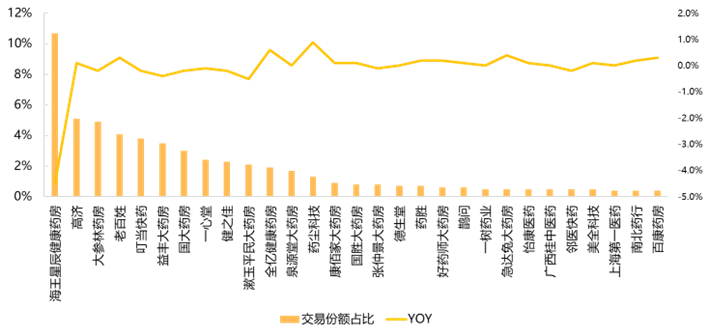 O2O在连锁药店整体销售中的占比差异显著。头部Top30连锁及部分由代运营机构服务的门店在该渠道表现突出,已上市的大型NKA 其O2O占比接近20%,开展新零售业务已成为其必然选择。